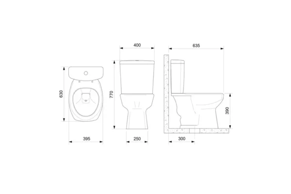 | Dimensões aproximadas de cada peça (AxLxP): | Assento: 4 x 69 x 44,1 cm; Bacia: 39 x 40 x 63,5 cm; Caixa 38 x 40 x |